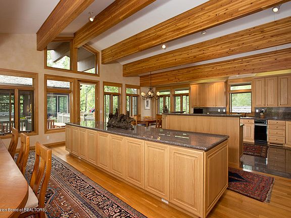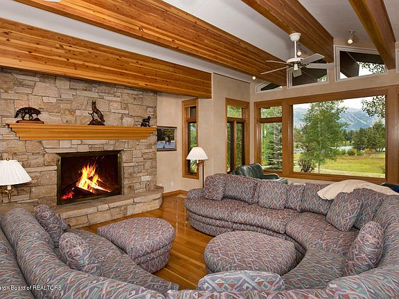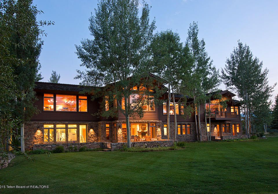 This property is under contract and seller is seeking back up offers. This 7.91 acre estate on Tucker Lake has seven bedrooms in it's just under 7,000 square feet. The ground-floor has a welcoming entry, powder room, a large, fully-appointed exercise room, a sizable family room with Teton views and four guest en suites. The upper level, just a quick stairway or elevator ride up, are the formal living and dining rooms with Teton Views, the kitchen and informal dining space, a powder room, a guest suite and master bedroom with stunning Teton Views, a gracious walk-in closet, a luxurious bathroom and ample additional closet space. Both levels have great outdoor access with decks on the upper level and terraces leading to lush lawns, gardens and the lake on the lower.