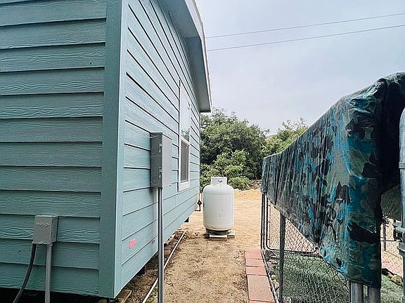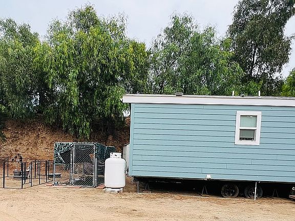 Beautiful aqua blue home with newer dishwasher, stove/range, microwave, and refrigerator (Frigidaire) appliances are included in the sale of the home. Farmhouse sink, Whirlpool washer/dryer, vinyl plank flooring, garbage disposal, and three ceiling fans. This amazing 2021 Clayton Homes (Manufactured home) has been very well taken care of, It is a (601 sq ft) with 2 bedrooms and 2 full baths. This could be a perfect home for you on your property, or used as an (ADU) additional dwelling unit for your existing property for a loved one, or as a rental. It is equipped with a Eufy security camera system, which includes four cameras, and automated key pad door lock to make the entry keyless, as well as bluetooth access via Eufy App. 1.5 ton A/C unit, and furnace, as well as a 60 gallon electric water heater. Stove/range, and furnace can be used with natural gas or propane (LP) gas. Home will need to be moved at buyers expensive, stands are included. Ecobee thermostat connects to your phone, as well as Eufy security cameras, and front door lock, and central heating/air conditioning. Home also has double pane windows throughout the house. Contact Raul Chavez: Chafas619@gmail.com (619) 430-9042