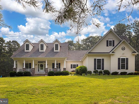 Welcome home to this exquisite and luxurious 5 bedroom, 2 1/2 bathroom Cape Cod home that offers a truly unparalleled living experience. Come to the solitude of horse country and leave the hustle & bustle behind! Beautifully situated on over 10 acre lot surrounded by trees, in the highly sought-after, gated Meadowland community in Locust grove, just minutes from Lake Anna. From the welcoming front porch with picturesque views to the elegant interior finishes and the expansive backyard, walking trails and private lot at the end of the cul-de-sac, this home has it all. It has been meticulously cared for by its current owners including a new water filtration system, outdoor patio, new interior paint (2023) and HVAC system (2020). Home features include a primary suite on the main level with walk-in closets, a huge bathroom with a jet tub w/walk-in shower; formal living and dining rooms, an oversized laundry room, 3 car garage. The main level also has 3 additional bedrooms and a beautiful bathroom. The Sunroom sits off of the kitchen, and overlooks the brand-new (2022) patio and rear yard complete with a built in gas grill and fire pit. The family room is the perfect space for relaxation, with a cozy gas fireplace and an open layout that seamlessly connects to the kitchen. There is a huge finished bonus space above the garage can be used as a a potential 5th bedroom, office, theater, or game room. Lovely forested land with creeks and trails, plenty of space for the explorers in the family. Desirable and exclusive Meadowland is a gated equestrian community located in the eastern end of historic Orange County Virginia and easily accessible to major airports: 90 minutes to Dulles or Richmond, 60 minutes to Charlottesville. High-speed Comcast available, and you still have easy drivable commuting options: 15 min to Park and Ride, 30 min to Fredericksburg and the VRE, 45 min to downtown Charlottesville or Quantico, 1 hour to DC via express lanes. Major universities/hospitals (UVa & Mary Washington) with their amazing health care systems within an hour. Eclectic and delightful dining options in Culpeper, Orange, and Fredericksburg an easy 30 minutes away. This gorgeous home in an amazing and bucolic community won't last long...make it yours and love the country life!