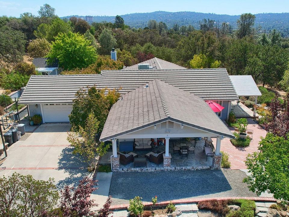 Absolutely lovely retreat home with 3 bedrooms, 2 baths and gorgeous outdoor living spaces! The front covered patio is a wonderful space to entertain. Follow the brick sidewalk to enter this well maintained home with a large open floor plan including a great room with propane heater stove, dining area, family room area and a stunning kitchen! High ceilings, recessed lighting, and large windows make this home spacious and bright. Shining Granite counter tops, 2 breakfast bar areas, propane stove, dishwasher and a walk-in pantry await you in the kitchen. Don't miss the office nook that is great for working from home! Convenient laundry room with additional sink and cabinet space. Spacious guest bedrooms and a master suite with private patio access. As beautiful as the interior of this home is just wait until you see the outdoors! Lovely slate covered patio, another patio with a pergola and view of 1 of the 2 Koi ponds, winding sidewalks, gazebo, spa and water fountain, several more open patio areas-1 with fireplace, English garden, treehouse and don't miss the charming art studio! 60 ft. garden with fruit trees and grapes, carport, matching outbuildings, attached 2 car garage, RV parking with hook-ups and ample parking. There are so many breathtaking features here! Your dream home is ready because this 2286+/- sq. ft. home has it all and more on 3.92+/- beautiful acres with large Oak trees.