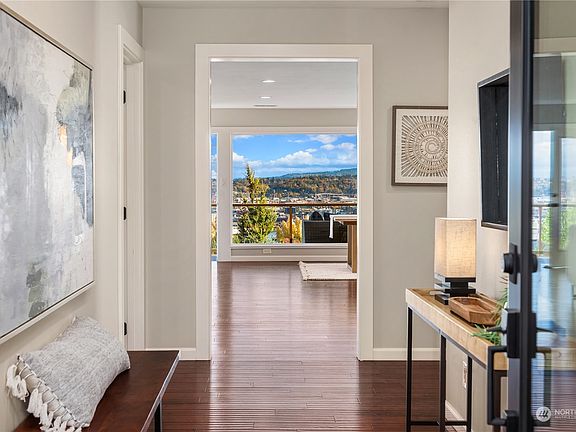 Turnkey view rambler with walk-out basement in Belvidere! This idyllic 4 bed / 2.5 bath home will not disappoint with modern amenities & systems plus gorgeous design appeal. Expansive Great Room is an entertainer's dream with huge picture windows & walk-out deck perfect for taking in panoramic city skyline to Mt. Rainier views. Impressive chef's kitchen with oversized island, Viking 6-burner gas range, double ovens, new slab counters & walk-in pantry. Featuring a main level primary with newly refreshed en-suite bath, 4th bedroom with Murphy bed & built in desk, rec room, bonus room, solar panels, AC, tons of storage, garage & more. Stunning landscaping including private fenced backyard with covered patio & easy-care shrubbery. Welcome home!
