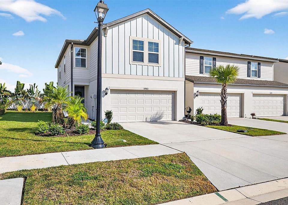 Exceptional living doesn't begin to describe this 3 bed, 2.5 bath with TWO CAR GARAGE and a LOFT space on the second floor. Meritage homes, Windsor floor plan with additional upgraded flooring on the first floor, a full two car garage, backyard with no rear neighbors, and a fully usable loft space- practically unseen in townhomes! The first floor has a smart design with enough space for a full dining set as well as informal seating at the granite kitchen countertops. Kitchen is equipped with Whirlpool stainless steel appliances, granite countertops, tall shaker cabinetry for additional storage space, a closet pantry and access to the garage. Your living room has a great view of the backyard and the additional dining space cant be overlooked. Venture upstairs to the second floor with a loft space, laundry room, and 3 bedrooms. Bedrooms 2 & 3 have a great space and share a jack and jill bathroom with shower/tub. The primary suite has a full ensuite bath with shower, dual sinks, plenty of room for storage and getting ready + your walk-in closet easily accommodates 2. The Towns are in a great location for easy access to everything youd need! Starbucks, CircleK, Chase bank, Publix, Chick Fil-A, GoodVets, nail salon, Florida Medical Clinic, and more retail coming soon. Be 10min from I-75 for easy highway access to all Tampa's major attractions. Best part? The Towns are a part of the Watergrass amenities! Come check out The Watergrass Club with fitness center, meeting space *rentable to residents, and spend weekends at the HEATED resort pool. Our 6 lane Jr Olympic lap pool is also open year round. The fitness center has a tot lot room & a full bathroom with shower. As you continue up Overpass Rd you can also enjoy Promenade Park with dog park, splash pad, third pool, outdoor pavilion *also rentable for residents, and coming soon PICKLEBALL COURTS! There is nothing to be left wanting for in this home- exceot your personal touch!
