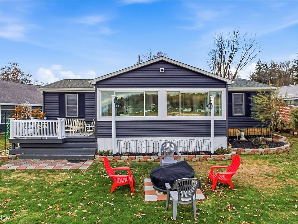 Prepare to be swept away by this breathtaking, TURN-KEY, fully furnished lakefront cottage at Guilford Lake. Completely remodeled from floor to ceiling, this home radiates luxury the moment you step inside. Vaulted ceilings, creative wainscoting details, and recessed lighting set the tone, while the open-concept brand-new kitchen shines with stainless steel appliances, ample storage, and beautiful Amish-built dining furniture—including the dining set, bar stools, and buffet. Relax in the serene three-season sunroom overlooking the lake, where the gentle breeze drifts in and melts the day away. The spacious primary suite features a king-size bed, a stunningly renovated full bath with a walk-in shower, and showstopping waterfront views. Two additional fully furnished and remodeled bedrooms, along with another updated full bath, are located in the opposite wing of the home for added privacy. From the dining area, sliding glass doors open onto a side deck perfect for entertaining, while an additional deck off the sunroom leads directly to the water. Enjoy evenings around the oversized fire pit as you watch the sunset across the lake. The property also offers a heated 2-car attached garage and your very own private dock. Major updates include a new roof (2022), new back siding, updated electrical panel, new windows, vapor barrier under the sunroom, serviced water softener, new well pressure switch and gauge, and regular HVAC inspections. It truly has it all—comfort, style, views, and effortless living. You'll be nothing short of wow'd while touring this charming cottage, so be sure to schedule your appointment today :)