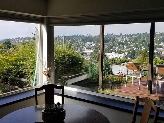 Very private Queen Anne one bedroom apartment with great views in house at the top of the NW corner of QA hill. Updated apartment with off street parking, fireplace, patio, outside and inside storage area. Bright living room and kitchen with great views to south and west of Elliot Bay and the Olympic Mountains. Off street parking for two cars in tandem. Renter is responsible for 1/3 of utilities. No smoking and no pets.
