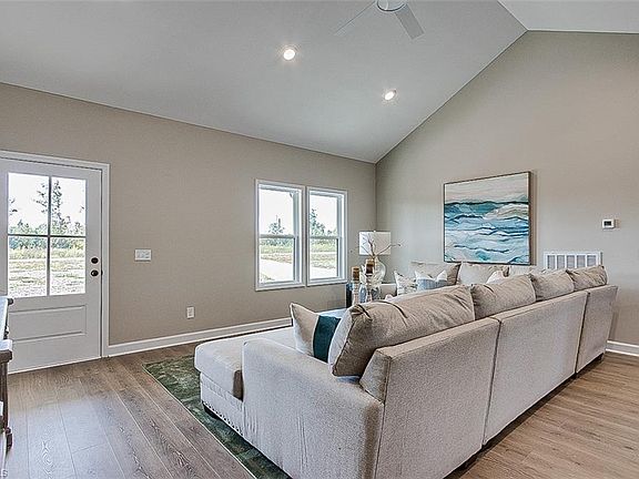 Beautiful new construction home! This custom built gem features a spacious split bedroom floor plan, vaulted & 9' ceilings & easy care Mohawk laminated wood flooring throughout! Inviting living room opens up to the functional kitchen boasting an eat-at island, pantry, under cabinet lighting, granite counters & breakfast area. Laundry room has storage cabinets with granite counters. Primary suite features a huge walk-in closet & full bath with marble top double vanity & composite stone shower! Spend your fall evenings on the covered front porch or entertain on the back deck. The attached double garage & paved drive provide ample parking. Convenient location with no city taxes!
