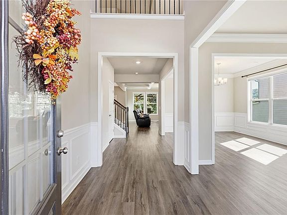Welcome to this beautiful like-new home in Jackson County. Nestled in the desirable Creekside section of Mulberry Park, this stunning 4-bedroom, 2.5-bath home combines modern comfort with classic charm. Step inside the grand two-story foyer, which opens to a versatile living area and elegant formal dining room—perfect for hosting family and friends. The spacious great room features a gorgeous coffered ceiling and flows seamlessly into the eat-in and well-appointed kitchen. Enjoy cooking and gathering around the oversized island with bar seating, complemented by beautiful granite countertops, stainless steel appliances, and generous walk-in pantry. Upstairs, the expansive owner’s suite impresses with double tray ceilings, dual vanities, two large walk-in closets, and spa-like ensuite bath. Three additional oversized bedrooms and convenient upstairs laundry room complete the second floor. Step outside to the private wooded backyard, ideal for relaxing, entertaining, or simply enjoying nature. The custom covered patio provides the perfect spot for year-round outdoor living. Experience the charm, comfort, and community of Mulberry Park located in Jackson County just minutes from Northeast Georgia Medical Center, shops, restaurants, schools, and major interstates.