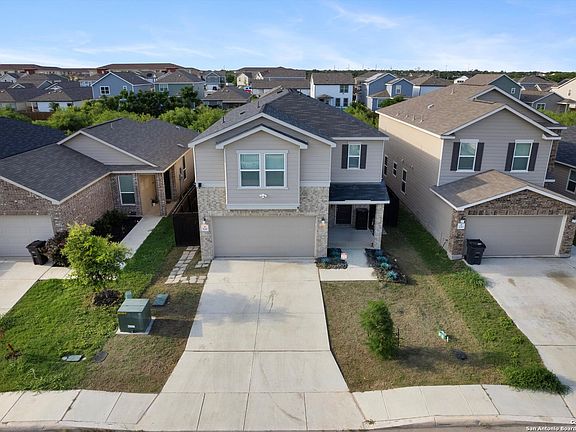 Located in the heart of south San Antonio, 3247 Old Almonte offers a sprawling 5-bedroom layout with generous living space on both levels. The home includes a guest room and full bath downstairs, a large primary suite upstairs, and sits on a greenbelt with no rear neighbors for added privacy. Highlights include a Tesla charger, enclosed covered patio, storage shed, and pre-plumbed water softener. Just minutes from Lackland AFB, Texas A&M-San Antonio, Port San Antonio, and major highways for quick access to downtown. Enjoy nearby shopping, dining, and recreation. Best of all, the loan is assumable at a 3.25% interest rate, making this home both a smart and spacious choice-offering the best price per square foot in the neighborhood.