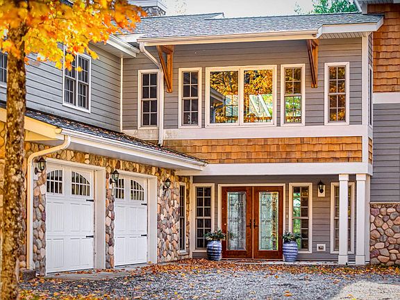 This Stunning 14 Acre estate stands alone in the woods as “The Executive Northwoods Modern Masterpiece” and mimics the keen genius of Frank Lloyd Wright design nuances. This beauty offers 6 Bedrooms; with amenities as walk-in closets, jacuzzi tubs, walk-in tiled showers, in a smart retro décor. The open concept kitchen of the main is commanding; with a dine-in continental bar, built-in island 4 burner gas stove with flat top griddle, dishwasher, double built-in oven, side by side professional grade refrigerator, overlooking a formal dining room, lounge area with a gorgeous lakeview through a wall of windows! This executive estate comes complete with its’ very own “Theatre and Wet Bar'' creating a dramatic gathering place around the flat screen and fireplace. . Going down to the Lower Level on your very own Elevator, there’s a “Game Room” outfitted with pool table that opens up to a lake side patio, “The Den'' offering the serious entrepreneur all the spoils of Work at Home life.