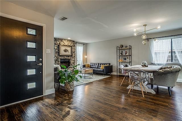 Absolutely STUNNING, completely updated home located in the heart of Plano in a quiet neighborhood w mature trees. Rich hand scraped hardwood throughout the first floor greets you upon entry. Private study w a barn door creates a quiet get-away. Kitchen has tons of counter-space & storage w light granite, white cabinetry, SS appliances & a huge island for gatherings. Enormous master suite w spa-like master bath featuring double marble shower w shelves for shampoos & walk-in closet. Secondary bedrooms have great closet space plus another updated bath! Backyard oasis w play area, sparkling pool & board on board privacy fence! Easy access to trails, parks & Jack Carter pool! Zero-fee loan available on this home!