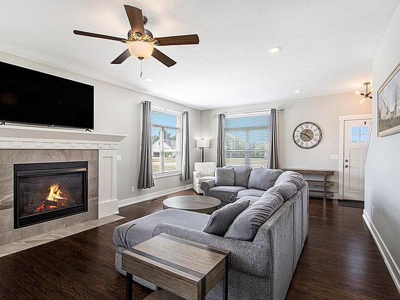 Your immaculate, pristine 4 bed/2.5 Bath home with lush backyard woods is waiting! Over half an acre! Large custom windows and blinds add to the stately feel of the home! Main level features an open-concept. Your kitchen boasts a spacious center island w/ nautical light. Abundant cabinetry and counter space! Cozy gas firplace and custom mantel complete the space! Sliding doors lead to a private back patio—perfect for outdoor entertaining. Main floor guest half-bath and laundry room are conveniently located near the entrance from attached two-car garage. Main-floor primary suite includes walk-in closet and an en-suite bath w/ walk-in shower! Upstairs, find 3 more lovely bedrooms and full bath! Basement w/egress window is more than ready to be finished!!