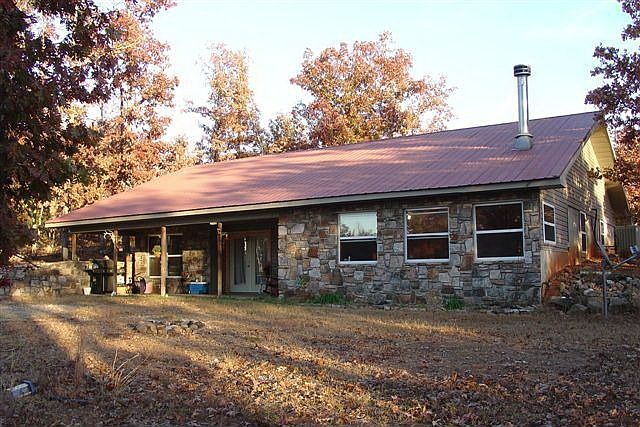 "HUNTERS DREAM 40 ACRE PRIVATE HIDAWAY, berm style 1800+s/f, stone and vinyl, 3 bed, 2 bath, built 2002, custom kitchen cabinets, granite counter tops, 40 double oven gas range, gorgeous tile floors, wood burning fireplace, inside entrance storm shelter with 8 in steel reinforced concrete walls and ceiling with vented 9 inch steel casing fire proof door, all interior walls are insulated, exterior walls 8 in steel reinforced concrete + inch insulation, 10 inch concrete floor slab, city water + well, fenced & cross fenced, 40% pasture, 60% timber rolling useable land, owner says great hunting spot Trophy Deer, huge pond, $246,500 #9