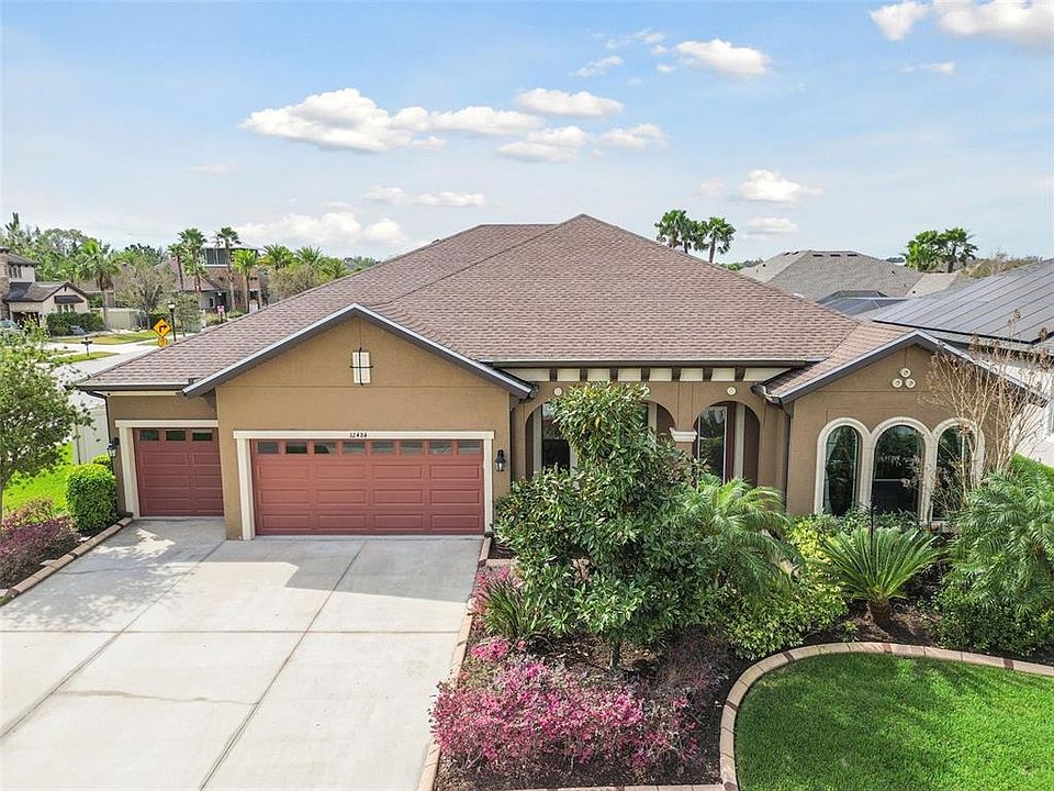Welcome to 32484 Worden Pass. Built by Homes by WESTBAY, the KEY LARGO is a stunning Florida-style home designed for both comfort and functionality. Situated on a spacious QUARTER ACRE homesite with a NEW ROOF (2025) and offered with a 1 year 2-10 HOME WARRANTY, this 4 bedroom plus OFFICE and BONUS ROOM, POOL home features soaring 12-foot ceilings in the foyer , dining room and grand room AND 8 FOOT DOORS throughout . The chefs kitchen creates an inviting and airy feel open to the grand room and the owner's retreat offers a private escape with double-door entry, DUAL WALK IN CLOSETS and a luxurious bath. Step outside to your personal oasis-a HEATED SALTWATER pool surrounded by elegant TRAVERTINE tile, all within a screened in LANAI with built in led lighting. Enjoy the outdoor ambience at night as the home has been upgraded with NEBULA lighting and a MOTORIZED SUN SCREEN. Unwind poolside, with your own OUTDOOR MOTORIZED 23 FOOT THEATER SCREEN, perfect entertaining or relaxing under the stars. This home is sure to impress and check all the boxes! Union Park offers its residents an ideal homeowner experience featuring a resort style pool, lap pool, clubhouse, fitness center, splash pad, dog park, zen garden, playground and miles of biking and walking trails. Schedule your private tour of this exceptional home today!