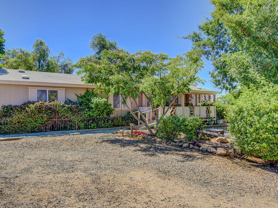Nice private lot with 2.5 acres and 2 separate homes, each with 3 bedrooms and 2 baths. These manufactured homes are on a cement slab with permits. House one in front is 1660 sq. ft. and House 2 in the back is 1440 sq. ft. Both homes have their own water well and separate electric. Both are newly painted and the front is a 1996 and the back is a 1993 Silver Crest. Both have central air and nice front porches. There is a 5000 gal. water tank on the property and a 1200 gal. septic tank. The horse property (zoned for 2 horses) has a corral with tack room and also a chicken coop and large garden area. The detached garage is 20x20 and has an electric door opener. This is a great compound for family or live in one and rent the other. Great deal!!