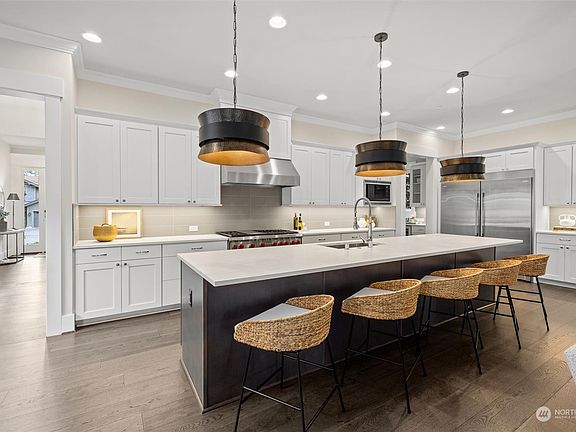 Luxury & convenience abound in this well designed 2019 residence in the heart of First Hill. Main floor boasts spacious great room complete w/chef's kitchen, well-appointed guest suite & dedicated office space. Step outside to the covered deck w/indoor/outdoor fireplace. Custom fully-fenced backyard featuring privacy & space to play. Upstairs primary suite offers a retreat, luxurious ensuite & ample walk-in closet. Second flr guest suite & 2 bdrm wing connected w/bath & media space. Find treats around every corner incl butler & walk-in pantry alongside custom mud-room entry from finished 3 car garage. Hardwoods throughout. MI's downtown is a few stairs away, level streets set your daily path. Come home to sophistication w/a touch of spunk.