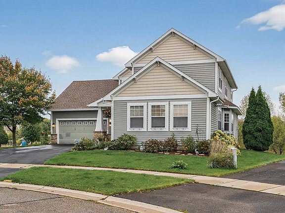 layout with hardwood floors, granite/stainless kitchen with island & pantry, and a cozy living room with fireplace. Main-floor office/flex room adds convenience. Upstairs features 3 bedrooms including a spacious owner’s suite with tray ceiling, walk-in closet, dual sinks, soaking tub & walk-in shower. The finished basement is built for entertaining with a wet bar, family room, 4th bedroom, bath, and walk-out access to the expansive patio. Enjoy outdoor living on the large deck and patio with peaceful park views. 3-car garage, cul-de-sac setting, and close to trails, schools, shopping, and downtown Stillwater. A rare