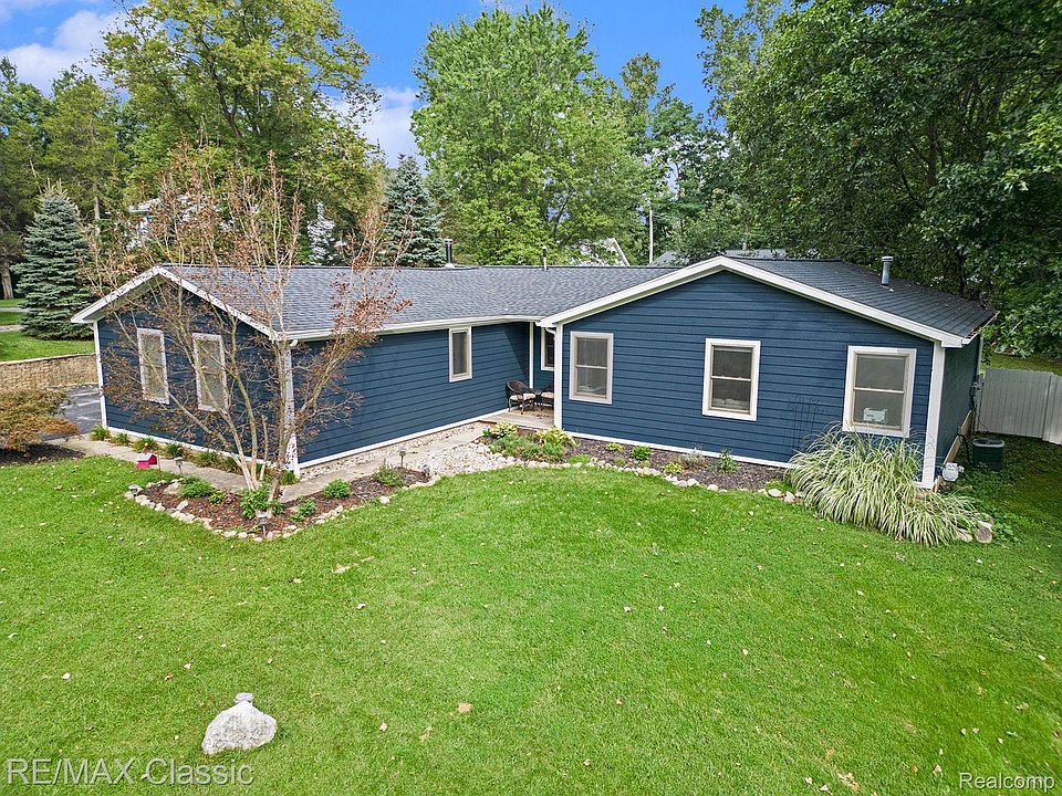 Highest & Best due by Monday, Sept 9 at 9 pm. Fantastic Ranch w/Large almost Fully Fenced Backyard, No Association & Large 30x40 Pole Barn w/10 Ft. Garage Doors, 60 Amp Breaker Panel, electrical Outlets, Concrete Floor, Cabinets & Large Countertop, 50 Amp RV Outlet. New 3D Shingles Oct 2023, New Water Softener w/Iron Gate 2017, New Addition 2022, New Stainless Steel Refrigerator 2019. Inside, You'll love the Open Floor Plan and solid surface flooring. Beautiful island Kitchen w/Stainless Steel Appliances, Oversized Dining Room w/Large Doorwall to Backyard w/Gorgeous Views, Luxury Primary Bedroom w/Door to Backyard Large Walk In Closet and Newly Updated Bath w/Dual Vanities & Oversized Walk In Shower. All Bedrooms have Walk In Closets and One Bedroom has Built in Murphy Bed. You'll Love the Quiet Location within the Heart of Portage Chain of Lakes. Agent is related to Seller.