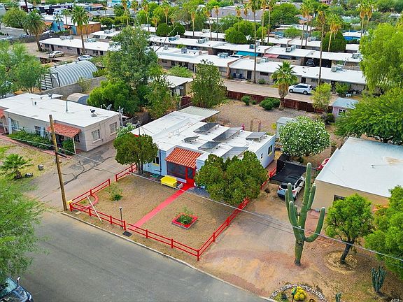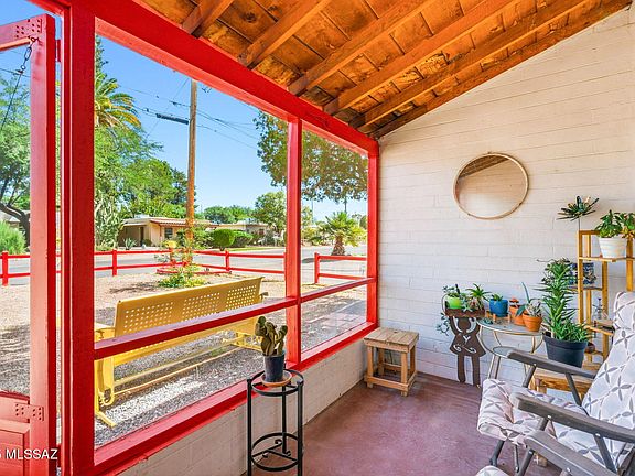 Charming Mid-Century Home Backing to Winterhaven with OWNED SOLAR! This beautifully updated 2-bed, 2-bath, 1,434 sqft home is tucked away on a peaceful side street in one of Tucson's most iconic and walkable neighborhoods. With direct access to Winterhaven, you'll enjoy tree-lined streets, holiday magic, and a true sense of community year-round. Step inside to discover stunning tongue-and-groove wood ceilings with exposed beams, which create warmth, texture, and an unmistakable mid-century character throughout. The home features new luxury vinyl plank flooring, spacious living and dining areas, and a thoughtfully designed kitchen complete with a gas range and plenty of storage. Seller may carry, bring all offers! The seller is a licensed agent in the state of Arizona. Major updates include a new foam roof and owned solar system, ensuring long-term energy efficiency and low utility costs. The large backyard is beautifully landscaped with mature trees and offers ample space for entertaining, gardening, or relaxing under the desert sky. A separate gated entry adds privacy and convenience.