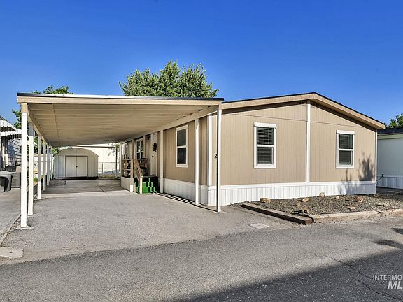 Beautifully updated inside and out. 3 Bedroom, 2 bath manufactured home in a quiet 55+community on the coveted Boise Bench. The spacious primary bedroom features its own bathroom w/a walk-in shower & a large walk-in closet that leads directly to the laundry room. Every detail has a been completed, brand new kitchen w/soft-close hinges, new stainless steel appliances including the refrigerator, new carpet, new LVP & new paint inside & out, new windows, new skirting, insulation, new roof, new gas furnace & central air, & new gas water heater. Enjoy the upgrades throughout w/new ceiling fans, lighting, doors & toilets. The bright, open living spaces create a welcoming atmosphere, while the oversized 53-foot carport provides ample covered parking. 10x10 storage shed w/a brand new floor. Conveniently located near shopping, dining and the airport, this home offers both comfort & accessibility. It's truly move-in ready and a rare find in a desirable 55+ community. Lot rent is $825/month, includes W/S/T. 6 month paid space rent with Full Price offer!