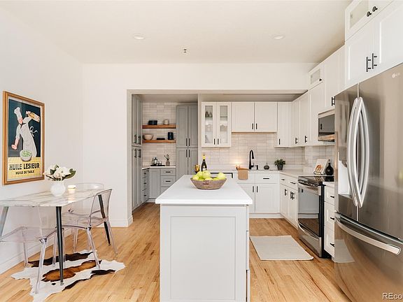 Beautifully reimagined loft-style condo in the heart of Highlands Square. This rare two-story residence in Fairview Place has been thoughtfully remodeled - with permits - from top to bottom, blending classic charm with modern sophistication. The chef’s kitchen features quartz countertops, custom shaker cabinetry, a full-height tile backsplash, and stainless steel appliances. Refinished hardwood floors flow throughout the main level, complemented by a newly added powder bath for guests. Dual primary suites each offer a serene retreat with new en-suite bathrooms and ample space for a king-sized bed. Convenient in-unit laundry is located on the bedroom level. A private garage plus an additional off-street parking space provide flexibility for vehicles and gear alike. The impeccably maintained grounds create a park-like setting for playing with your dog or a picnic on a perfect Denver day. A communal patio is perfect for grilling. Highland Park is just a block away for more outdoor exercise and relaxation. Set just a block from the vibrant restaurants and shops of Highlands Square, this immaculate home offers the perfect blend of style, comfort, and convenience. With downtown Denver only minutes away and quick access to I-70 and I-25, every Colorado adventure is within easy reach. This is an incredible perfectly updated lock-and-leave home in one of Denver's most coveted neighborhoods close to everything. Welcome home.