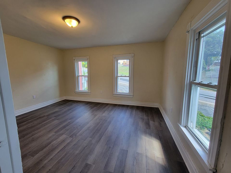 2 bd 1 bath house in a quiet neighborhood. Large living room with eat in kitchen. laundry hook up in full basement. Detached garage for rear off street parking. section 8 optional