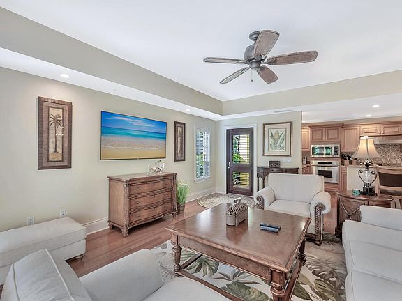 Available for March and April and also the 2026 off-season. Situated in the heart of Old Naples, this beautifully appointed 3 bedroom, 2.5 bath residence is your ideal home-away-from-home. The bright and airy living room exudes coastal elegance, blending comfort and style seamlessly. The gourmet kitchen features rich cabinetry, granite countertops, stainless-steel appliances, a wine refrigerator, and a counter-height breakfast bar perfect for casual dining or entertaining. Adjacent to the kitchen, the dining area offers generous seating for family and friends, creating the perfect setting for memorable gatherings. The serene primary suite invites relaxation with a plush king-size bed, a spacious walk-in closet, and direct access to the pool area. The luxurious primary bath includes dual vanities, a large walk-in shower, and a soaking tub. Guests will feel right at home in beautifully furnished bedrooms, one with a king-size bed and the other with a queen. Additional features include a generous laundry room with utility sink and a one-car garage for added convenience. Just outside you'll find the brick-paver patio overlooking the sparkling community pool, spa, and lush tropical landscaping. Enjoy easy access to the community grilling area located just beyond your back door. Only minutes from the boutiques and dining of 5th Avenue South and 3rd Street South, as well as Naples' pristine white-sand beaches, this private winter retreat offers the ultimate Old Naples lifestyle. Live Exceptionally in Old Naples!