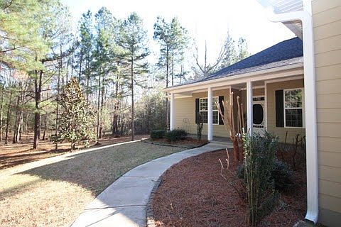 $259,900 on 2.5 acres! Spacious, open floorplan with 4 bedrooms, 2 full baths and rocking chair front porch. Open foyer into formal dining room and great room with corner, stone, gas fireplace. Eat-in kitchen includes stove, vent-hood microwave, dishwasher, refrigerator and pantry. Master bedroom with sitting area. Master bathroom with separate garden tub and shower, his and her sinks, and large walk-in-closet. Beautiful hardwood floors throughout the home, carpet in the 3 spare bedrooms and ceramic tile in bathrooms. Home also includes a spacious laundry room with cabinets and wash tub, blinds throughout, and ceiling fans in each bedroom. Quiet and private LARGE fenced backyard, side entry 2 car garage, and large screened in back porch and back patio, great for entertaining.