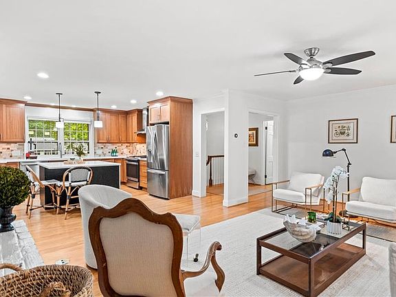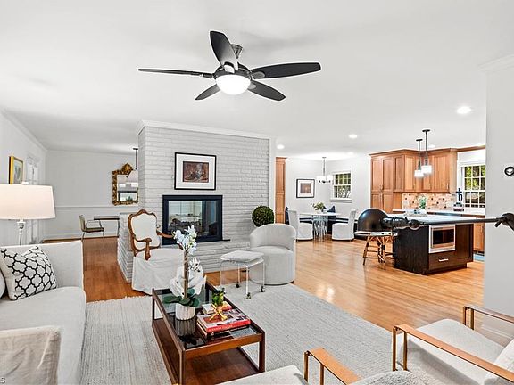 Elegant 4BR, 3.5BA split-foyer residence in prestigious Buena Vista, on a quiet cul-de-sac bordering Forsyth Country Club. This refined home showcases an open floor plan perfect for entertaining with a dramatic double-sided fireplace between the spacious living and dining rooms and open to the newly updated chef's kitchen with new quartz counters, stainless appliances, and breakfast nook with built-in bench seating w/storage, take the party outside onto the screened porch and expansive deck overlooking a private forest! The primary suite offers a true retreat with sitting area & wet bar for morning coffee, walk-in closet & spa-like bath with vaulted ceilings, skylights, dual vanities & smart toilet. A spacious lower level provides flexibility for a home office, gym, or guest space with direct access to a fenced dog run. Additional features include a 2-car attached garage and tankless gas water heater. Path in back connects to neighborhood trail linking to golf course and Shaffner Park
