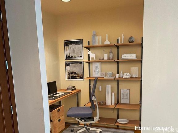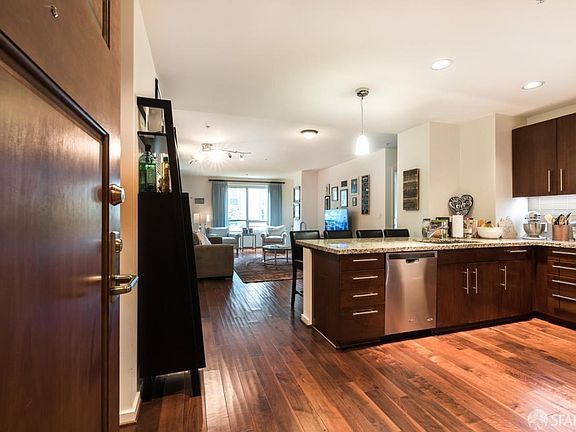 Upon entering this 2-bedroom, 2-bathroom home with a den/office, you'll immediately appreciate its efficient open floor plan. To the right, a premium-grade kitchen features high-quality stainless steel appliances and overlooks the breakfast bar, dining area, and spacious living room. On the left, there's a den/office area with a closet, a primary bedroom with an en suite bathroom and walk-in closet. Adjacent to it is the secondary bedroom and another bathroom, also with a walk-in closet. Additionally, there are four more closets throughout the home, along with a full-size washer and dryer. Each residence at Park Terrace includes an assigned parking space and high-speed internet at no extra cost. Please note, this home is not available to lease until 9/1/23; virtual staged images have been used for representation.