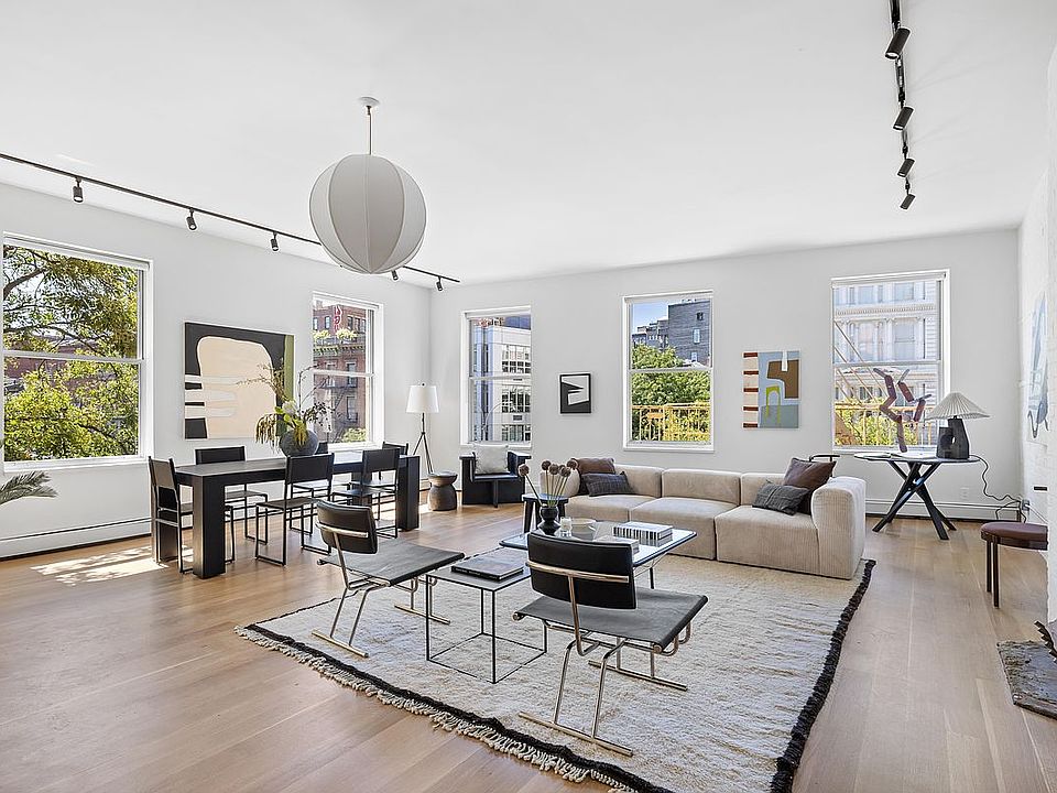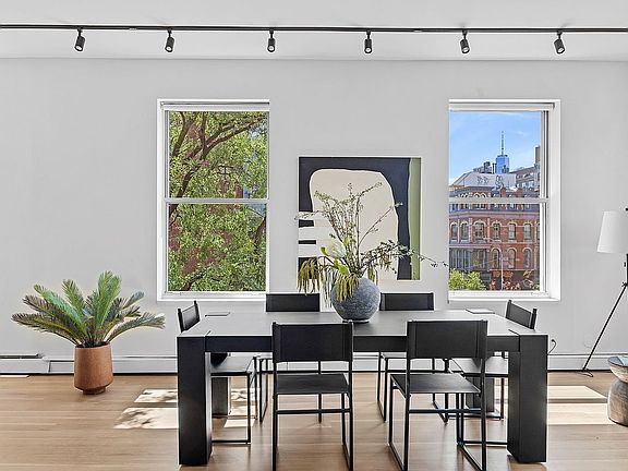 Step inside to a dramatic corner great room where light pours in from the south and west, illuminating exposed brick, wide-plank hardwood floors, and 2 striking decorative fireplaces. A gracious entryway with a powder room and coat closet leads you into the expansive entertaining space, where treetop views of Bond Street provide a tranquil backdrop in the heart of the city.