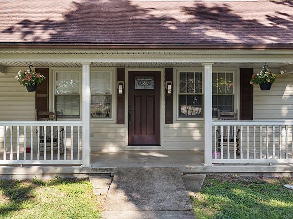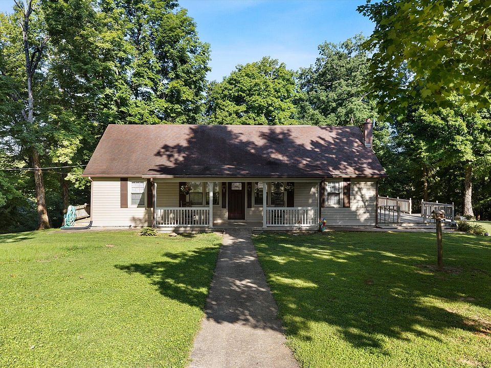 This home and 4+ acres are nestled on top of Parksville Knob, 8.5 miles from downtown Danville. A black plank fence outlines the front of this private property. Beautiful grounds with shade trees, plentiful outdoor storage structures and a two-car garage. Main floor of the home conveniently features laundry room, bathroom and two bedrooms. Boasting freshly painted white walls, an upstairs landing area and a 3rd bedroom. Easy entertaining on the large wood deck. The side lot possess a stunning outdoor stone fireplace.
