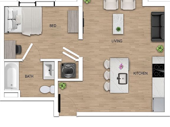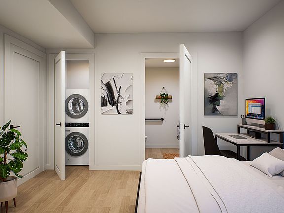 Every apartment is fully furnished and features stainless steel appliances, an in-unit washer and dryer, and floor-to-ceiling windows that flood your space with natural light.
