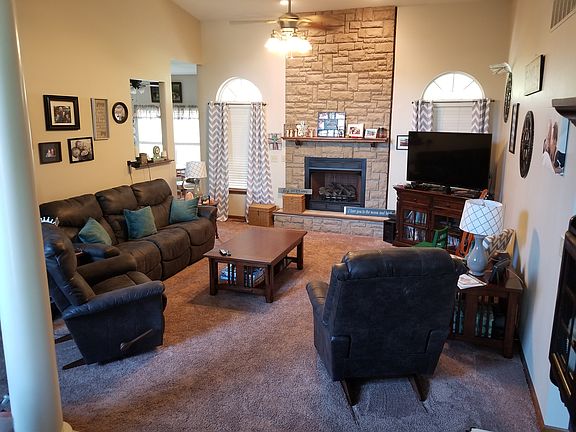 You will want to see what all this one owner home has to offer! As soon as you walk into the door you will love the open floor plan, soaring ceilings, new carpet and fresh paint throughout. The kitchen is a chefs dream w/an ample amount of cabinet and counter top space, breakfast bar, eat in dining area, pantry, and separate dining room. The split bedroom design give the extra privacy for your family or guests. Large master suite w/nice sized bedroom, huge bathroom w/double vanity, separate shower and walk in closet. Fully finished basement w/bar area, full bath, family room, one or two bedrooms (one wall needs to be walled off to make two bedrooms) John Deere room and large patio overlooking the level back yard. Seller added vent boosters to make home more efficient w/heating and a/c.
