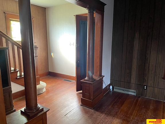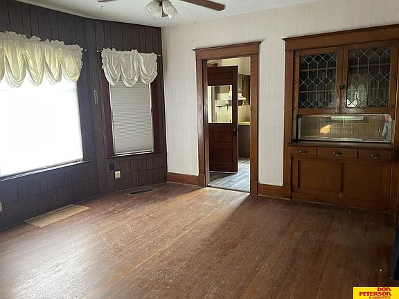 Just listed in Lyons, NE! This spacious 1.5-story home offers 4 bedrooms, 2 baths, and plenty of charm. The main floor features a bedroom connected to a full bath, formal dining area, laundry, and beautiful woodwork with an open staircase. Upstairs you’ll find 3 additional bedrooms and a half bath. The unfinished basement includes a brand-new Thrasher system installed in 2025. Enjoy both a 1-car attached garage and a 2-car detached garage with alley access. Relax on the large shaded deck or make use of the garden shed for extra storage. With permanent siding, a great location close to school and downtown, and room to grow—this home has it all!