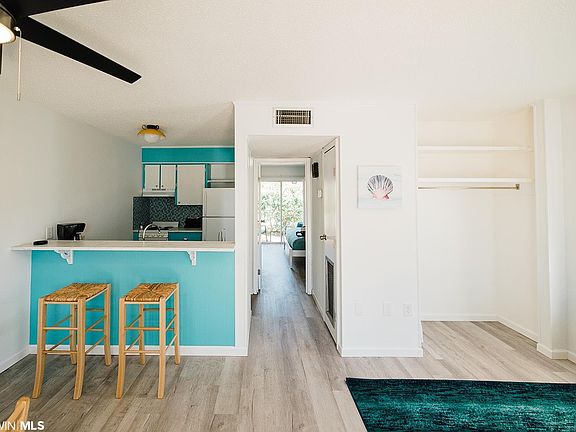 This is a rare opportunity to own a second home, investment property, or primary residence at an affordable value at the iconic Island Villa. This is the first converted short-term rental property in the new Waterway Village District. The location is ideal and you are in the middle of it all: 5 minutes to the white sandy beaches, within walking distance of the State Park Trails and minutes to local coffee shop, yoga studio, eclectic shopping, dining and entertainment. There are at least 8 restaurants within easy walking distance, not to mention Gulf Shores' only Brewery. The new Pedestrian Bridge over the Intracoastal Waterway which should be under construction in 2023 is an easy walk away, and will be a game-changer for The Waterway Village District. The interior and exterior of the iconic Island Villa has been totally renovated. The complex has a new roof, fresh paint, landscaping, and a new iconic pool. This ground floor unit has been beautifully updated with features that include new LVP flooring throughout, new lighting fixtures, new ceiling fans, and is fully furnished down to the cookware and utensils (rent-ready). The bright, coastal color theme in the kitchen has a tiled backsplash, new countertops, and dining area. This 1-bedroom condo can comfortably sleep 4 people with a king bed in the primary bedroom and a queen sleeper sofa in the living room. The primary also has sliding glass doors that open to the patio. Each unit has a view of the sparkling pool, access to laundry and ice machine facilities as well as the BBQ/grill area.
