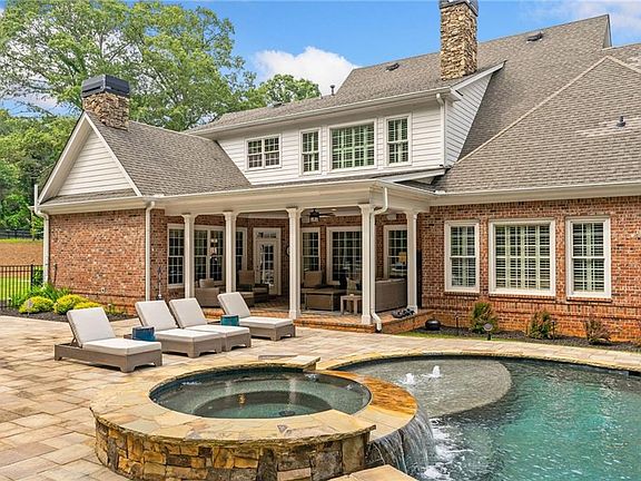 This stunning executive home sits on 2 acres in the Creekview High School district, in the exclusive Shoals at Arbor Hill equestrian neighborhood—just 25 minutes to Downtown Alpharetta and Woodstock. ****White lime wash depicts a possibility for this homes exterior.*** Enjoy resort-style living with a heated saltwater pool and hot tub, landscape lighting by Georgia Lightscapes, new irrigation, a covered pavilion with fireplace, granite outdoor kitchen, and a separate gazebo with fireplace. Inside, the chef’s kitchen features quartzite counters, WOLF appliances, Sub-Zero fridge, Blanco sink, and new hardware. The main-level owner’s suite offers hardwood floors, dual closets, and a remodeled bath with COPPER air-jet tub, heated floors, bay windows, and quartzite throughout. Guest and laundry baths have also been fully updated. With 6 bedrooms, 6.5 baths, a fireside family room, keeping room with fireplace, loft recreation area, unfinished basement, and a main-level office with full bath (ideal for a 6th suite), there’s space for everyone. Upstairs includes 4 more suites and a media loft wired for surround sound. Additional highlights: whole-home surge protection, tankless and backup water heaters, new HVAC upstairs, Sonos wiring, Boston Acoustics speakers, custom lighting, cherry bourbon closet, and garage with Guardian flooring, custom storage, and kegerator system by Garaginazation ($30K). Community perks include a park with gazebo, playground, and court, plus optional membership at nearby Woodmont Golf & Country Club. Luxury, location, and lifestyle—this home has it all.