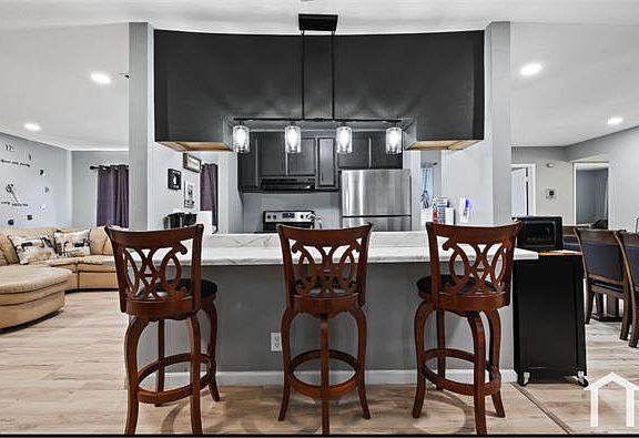 Unfurnished $4700 some utility paid or Furnished $5800 all utility included This single-story home offers 1,600 square feet of clean, comfortable space, ideal for working professionals traveling alone or with a small family. The layout is open and bright, with laminate flooring and central heating and air to keep the temperature right year-round. The living room has a wood-burning fireplace, smart TV, and a sectional couch, making it easy to settle in after work. The kitchen's fully stocked with appliances, cookware, utensils, granite countertops, and a breakfast bar. For more properties like this visit Affordable Housing.