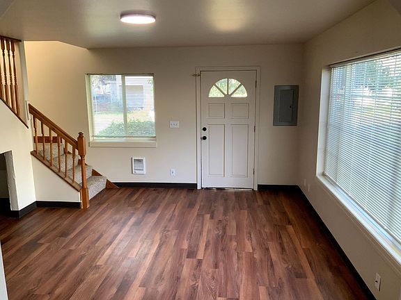 2 bedroom, 1 bath duplex on corner lot conveniently located off Roosevelt near Hwy 99. 2 stories with bathroom and bedrooms on upper level. Luxury vinyl plank flooring in living room, kitchen, and upstairs bathroom and carpet in bedrooms. Off street parking.