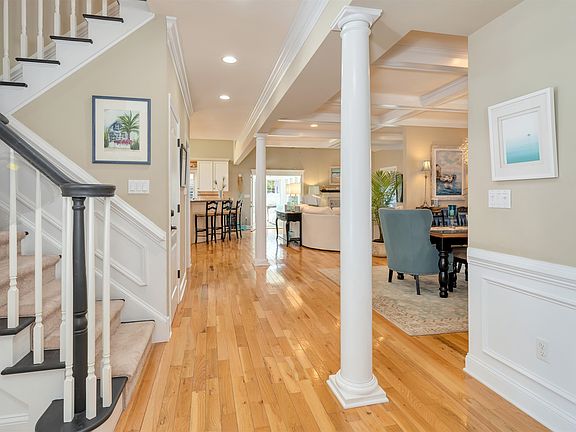 Paradise found! Welcome to your gorgeous shore home, just a short bike ride to the beach, and into town. Relax on the beautiful wrap around front porch with morning coffee, or evening glass of wine. The home is 3,222 sq. ft., 4 bedrooms- one currently used as a dressing room/walk-in closet - and 3 full baths. The first floor has an open concept design, perfect for entertaining. It features hardwood floors, and a gourmet kitchen with granite countertops and stainless-steel appliances. The large kitchen island opens up to the Great Room, which features a gas fireplace. There is a separate dining area, and also a breakfast nook. The laundry room is conveniently located on the first floor, with a full-sized washer and dryer, cabinets for storage, and laundry sink. One of the home's two Primary Bedrooms en suite is located on the first floor. At the back of the home, French doors open to a beautiful 4 Season Room, complete with skylights and windows all around. The second floor features another Primary Bedroom en suite, which opens to an attached second floor deck. The en suite bath features a soaking tub, double vanity, and large glass-enclosed shower with built-in tiled bench. The second floor also has two additional bedrooms - one of the two is currently used as a walk-in closet and dressing room - and an additional bathroom. The attic is divided into a typical storage area, and also a drywalled playroom/office with flooring and 2 skylights. Steps to this room are accessed from the guest bedroom closet.
