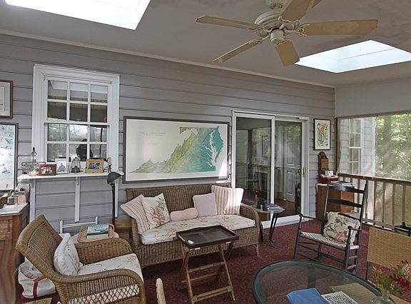 2115 sf home on 1.217 ac lot at Glebe Woods, three bedrooms, 2 full baths, great room, screened porch, mature landscape, dock on Carter Creek, walk to Irvington for shopping and dining.