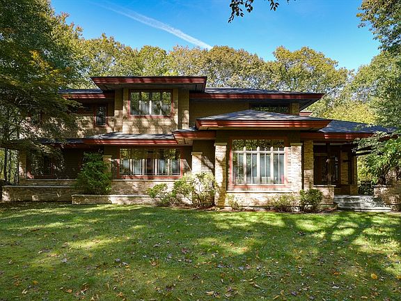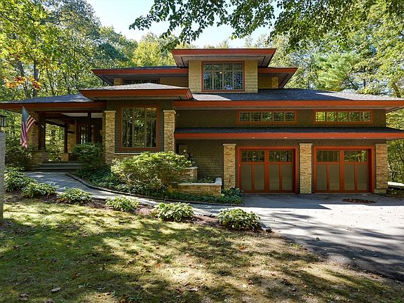 Frank Lloyd Wright inspired home on 12 Private Acres. Experience architecural elegance and natural harmony in this stunning 3 bedroom Frank Lloyd replica home. Every detail reflects Wrights signature design philosophy-clean lines, organic flow.Step inside to find pristine hardwood floors, a spacious family room anchored by a striking fireplace, and expansive windows that flood the home with natural light and frame peaceful woodland views. The chefs kitchen features a large center island. The primary suite offers a luxurious retreat with a jacuzzi tub and double headed shower. A bright airy 3 season room extends your living space, overlooking the mahogany deck and flower boxes, invites you to enjoy your morning coffee. Outside the properties thoughtfully designed landscape includes a bocce ball court, and endless oportunities to enjoy the tranquility of nature. This home blends timeless architecture, modern comfort and the serenity of country living and easy access to major routes.