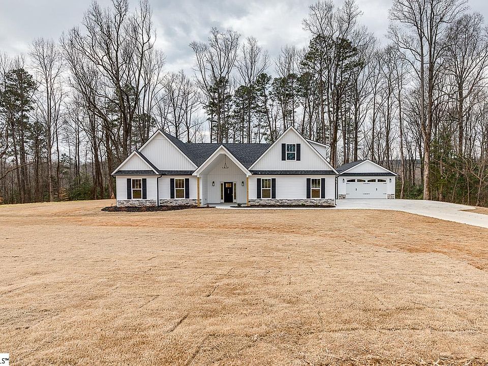 NO HOA - PRIVATE 5 ACRE HOMESITE - "HIS AND HER GARAGES"!! Welcome to 325 Groce Meadow Road. Conveniently located in Taylors just 2 minutes from beautiful Lake Robinson, this BRAND NEW HOME has everything you want! Sitting on over 5 acres, this beautiful 4 bedrooms, 3 bathroom home features an open floor plan on the main level. The spacious kitchen has stainless steel appliances, quartz countertops and is open to the living and dining area. Off the living room you'll find a huge covered patio. The master on main has a large ensuite with multiple closets, double sinks, separate shower and bathtub. The main level has another bedroom with an ensuite, which would make a great in-law room or guest room! Upstairs you'll find an additional bedroom and a large bonus area. Features an oversized attached garage and a 22'x30' detached garage. Don't miss your opportunity to call this one home!