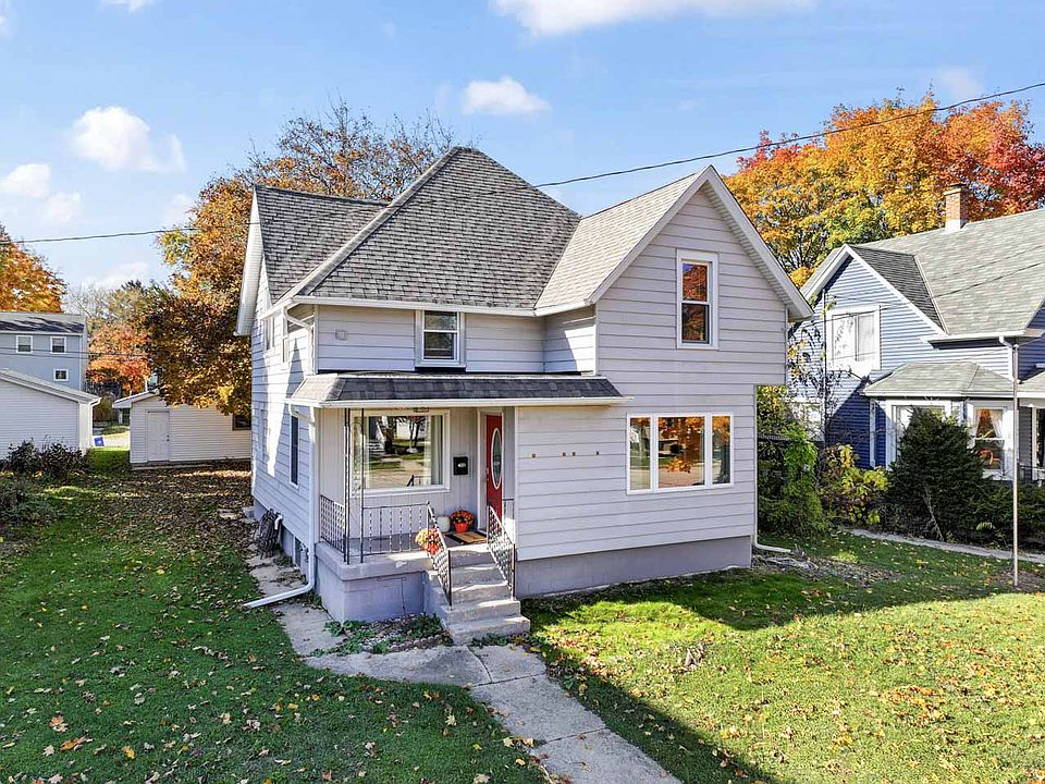 Charming 2-story home in a beautiful Burlington neighborhood, just minutes from downtown! This 4bed/2bath home offers the perfect blend of character and comfort. Enjoy stunning original hardwood floors in the living and dining areas, a beautifully updated kitchen with granite countertops and a moveable island, and great flow throughout the main level. One bedroom is conveniently located on the main floor, while the additional bedrooms upstairs are all spacious with generous closets. The upper-level laundry room makes daily living a breeze! You'll love the cozy enclosed back porch, full unfinished basement for storage or future expansion, and the detached garage with alley access. Situated on a gorgeous tree-lined street close to shops, dining, and schools. This home is roomy yet cozy!