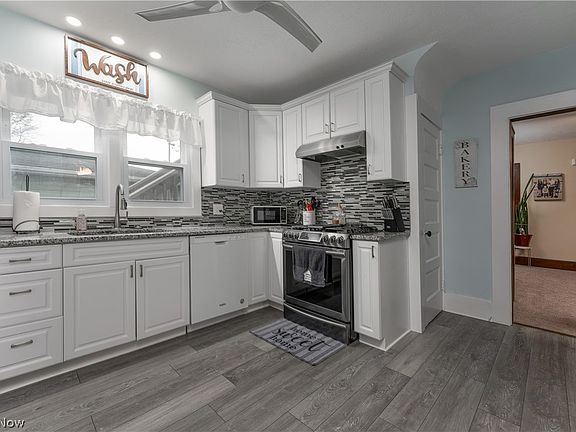 Check out this fully remodeled 5-bedroom, 3-bath home in the heart of Ellet! Once you walk in you will notice the gorgeous updates mixed with craftsman-style charm. The updated kitchen has stainless steel appliances, tile backsplash, recessed lighting, white cabinetry and new flooring. The dining room is large with beautiful woodwork and a charming bay window with seating. Off the dining room is a laundry room with half bathroom. Finishing off the first floor is the great room with fireplace, many windows, and flex space that can be used as a play area, office, or whatever buyer desires. Upstairs holds the spacious master bedroom with walk-in closet with built-in shelves and windows and a master suite with separate vanities with granite countertops and jetted tub/shower combo with tile surround. Also on the second level is two bedrooms with fresh carpet, a beautiful updated bathroom with granite countertops and jetted tub/shower combo with tile surround. The THIRD floor has 2 additional bedrooms with fresh carpet. Step outside and enjoy a covered fronch porch with swing or head to the backyard with the large, 2-level deck or the brand new above ground pool (installed with new pump in 2022).