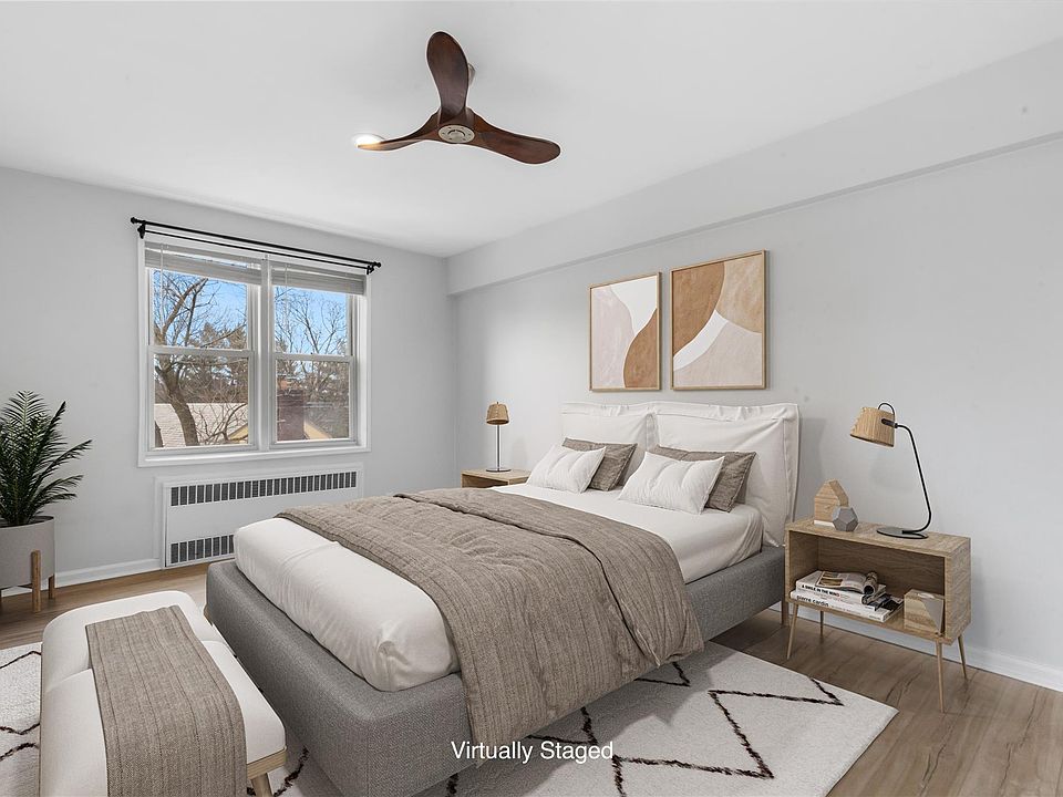 Beautifully appointed one-bedroom co-op located in the heart of Port Chester, just steps away from the train station, shopping centers, restaurants, Costco, theaters, and more. This freshly painted unit is bathed in natural light and features spacious rooms with ample closet space. The kitchen boasts granite countertops, numerous cabinets, a pantry, and modern appliances including a refrigerator, stove, microwave, and dishwasher. Enjoy your morning coffee or unwind in the evening on your private balcony. The building offers a secure environment with intercom entry, convenient interior mail access, a clean above-ground laundry room, and additional storage options. The welcoming lobby adds to the charm of this residence. For your convenience, there are two deeded parking spaces—one in the garage and another in a private exterior lot. Don't miss the opportunity to make this lovely co-op your new home!