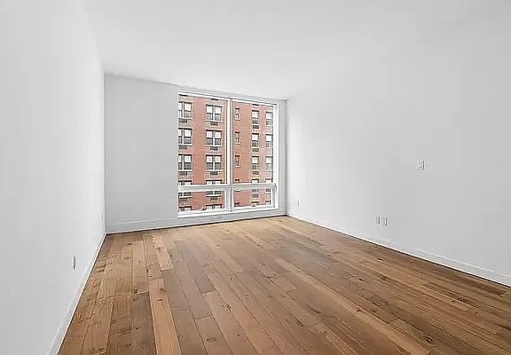 Apartment features the wide plank walnut floors, floor to ceiling windows, custom walnut kitchen cabinetry, high-end European appliances and washer/dryer in the unit. The apartment has generous closet space.