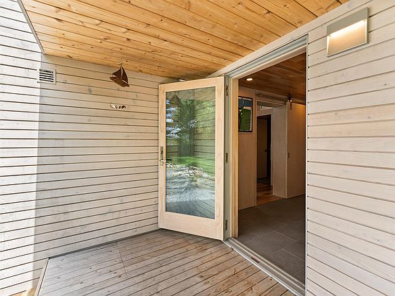 An unparalleled opportunity awaits with this offering of the first Lloyoll-designed residence to come to the resale market in Nova Scotia. This iconic coastal dwelling marries timeless design with refined functionality, embodying the modern modular ethos of Lloyoll Prefabs. Poised on a gently sloping lot in the coastal enclave of Port Medway, the home captures the Atlantic coastline with panoramic ocean views and offers direct access to the pristine natural beauty of Nova Scotia's South Shore. Crafted with Lloyoll's signature aesthetic, the residence is a tribute to clean lines, natural materials, and seamless spatial flow. Its natural wood exterior harmonizes with the coastal environment, while the interior’s rich wood finishes, soaring ceilings, and expansive glazing maximize light and perfectly frame the seascape. A private covered deck, with automated retractable screens, extends from the living space, an ideal setting for tranquil mornings or breathtaking sunsets. The main living area offers cathedral-style volume and warmth, anchored by wide-plank wooden floors and a charcoal-accented feature wall. The thoughtful layout includes a dedicated "mud pod" connected to a two-car garage via a breezeway. The chef’s kitchen, with premium Bosch appliances and crisp quartz countertops, forms the heart of the home. The residence features an ocean-facing primary bedroom with a private ensuite, a flexible office/guest room with a discreet Murphy bed, and two additional sleeping lofts. A third lofted space provides abundant storage. A second full bathroom, dedicated laundry space, and a backup generator complete this exceptionally functional, turnkey home.Situated on a quiet oceanfront parcel, the residence is enveloped by mature greenery and a meticulously curated natural landscape. The sheltered waters of Port Medway provide an idyllic backdrop for kayaking, birdwatching, or simply enjoying the salty air and ocean vistas.