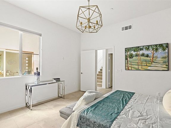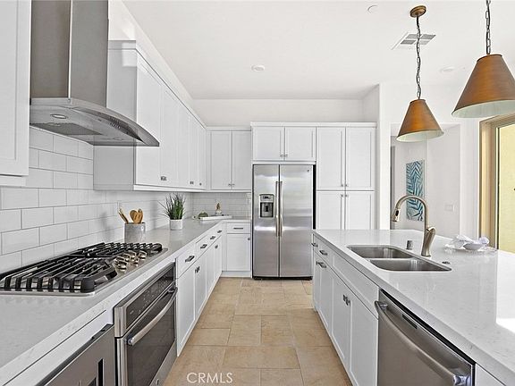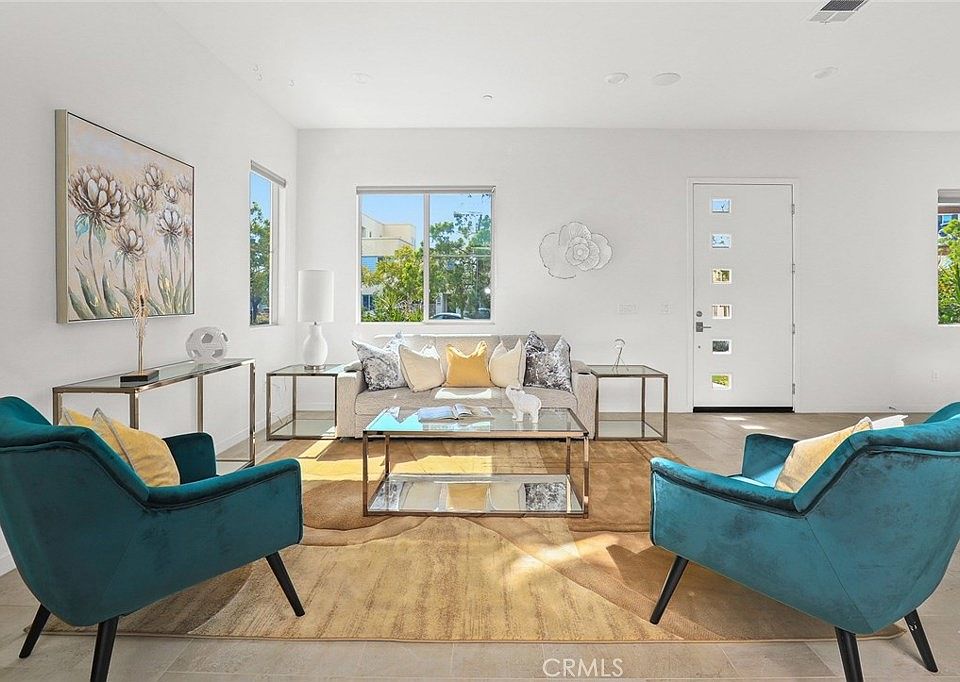 This gorgeous two-story model home at the Lanterns Community at Parasol Park, with 3 bedrooms and 3.5 bathrooms, features a bedroom and full bathroom downstairs that is perfect for guests or relatives. An inviting floor plan is also functional in design with a courtyard, openly accessible through stacking patio doors, serving as an extension of your living area for entertaining or relaxation. Stainless steel appliances, GE Profile refrigerator, quartz kitchen countertops, and soft-close kitchen cabinet doors are a chef's delight. Master bathroom with dual vanities, framed mirrors, and shower walls with subway tiles to the ceiling. Generous sized walk-in closet off the master bedroom. This model home boasts many upgrades such as upgraded tile flooring and carpet throughout the home, window treatments, elegant light fixtures, and full hardscape landscaping in the front and inner courtyards. Within a four block walking distance to K-8 Beacon Park School and a 2-block walking distance to the future 8-Acre Water Park to include two pools, wading pool, Jacuzzi, community club house, and more. Also within walking distance to the Great Park Sports Village and other flex sports fields.