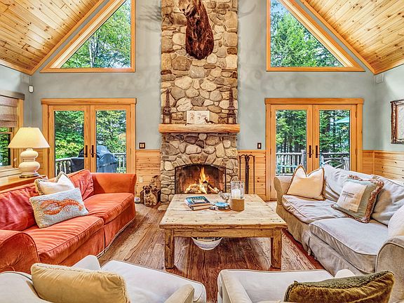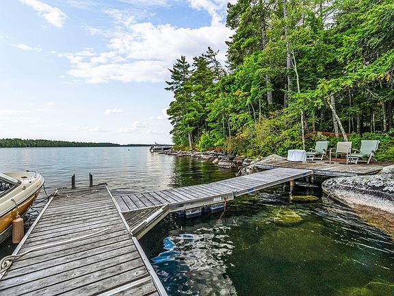 GREAT POND First time offered — a rare opportunity to own a custom-built, year-round log home on Great Pond, the most celebrated of the Belgrade Lakes! Set on nearly an acre in one of the lake's most highly desired neighborhoods, this 4-bedroom (3BR septic), 4-bath retreat combines natural materials, artisan craftsmanship, beautiful gardens & modern comforts. With 100 ft of deep-water frontage, private dock & sunrise views, the property offers both privacy & connection to one of Maine's most iconic lakefront communities. Welcoming foyer opens to a light-filled great room where soaring cathedral ceilings, wood-burning stone fireplace & wall of windows frame unobstructed lake views. The open dining & kitchen area features custom cabinetry, stone counters & center island, flowing seamlessly to the expansive lakeside deck. Primary ensuite includes radiant heat, steam shower, walk-in closet & a private deck wired for a hot tub. Two additional bedrooms & full bath complete the main level. Upstairs, an ensuite guest bedroom offers privacy with a separate loft suitable for a home office or additional guests. The daylight walkout level was designed for gathering, featuring a family & media room with gas fireplace, a game room with pool/ping pong and built-in Murphy bed. Full kitchenette/large laundry room with three refrigerators—full-size, wine & beverage—supports entertaining. The oversized custom-tile shower with stone floor offers spa-level comfort. Walkout access leads to a bluestone patio framed by professionally landscaped gardens, stonework & outdoor lighting. Walk to ''The Mountain'' trailhead, access Maine's snowmobile trail system or enjoy world-class golf at nearby Belgrade Lakes Golf Course. Sugarloaf Ski Resort is just over an hour away. A short walk brings you to the Belgrade Lakes Village with its charming General Store, restaurants, and wine & cheese shop. Less than 30 minutes to Waterville or Augusta, 60 minutes to Sugarloaf & under 90 minutes to Portland.