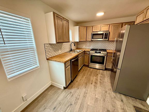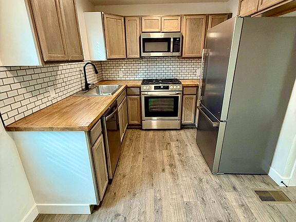 Be the first to live in this completely renovated new to the rental market modern space. Convenient desirable location blocks from historic downtown Grand Junction and only a 6 min. drive or 12 min. bike ride from St. Mary's Medical Center. Enjoy all new forced-air heat and A/C, new flooring, tile, appliances, cabinets, paint, tile, electric, and insulation. There is a 2 car garage for toys, cars or additional storage. The spacious floor plan consists of 5 rooms upstairs: kitchen, living room, two bedrooms and a bathroom. Downstairs there are 4 rooms: a large room that would make a great theater/gym/craft room, another room that would make a great office, a bathroom with laundry area including a full size washer and dryer. If you want to live close to historic downtown or St. Mary's Medical Center and don't want to live in a large apartment complex, this is your place! There is a small flagstone patio and yard area in back partially fenced. A dog under 70 lb is welcome upon prior approval with $35/mo pet rent and $300 refundable pet deposit. This unit is part of a duplex. Water, sewer, trash and recycle are included in rent. Rental Requirements: 620+ credit score 2X income to rent 6 months at job/3 most recent paystubs 2 landlord references No past evictions Credit/Background check ($20) subtracted from 1st mo. rent Not accepting applicants with co-signers If you meet the above requirements, message the day(s)/time(s) you would like to view it. Applications are available after property viewing. Available now. 12 month lease. Water, trash and sewer are included in rent. Electric, gas and internet are tenant responsibility. No smoking. This unit is part of a duplex.