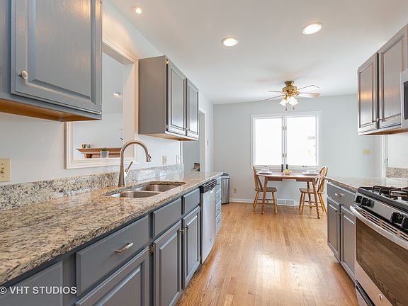 This beautiful RANCH home is tucked back into a quiet corner of in-town Elburn in a lovely established neighborhood. From the great curb appeal to the vaulted great room to the fenced back yard, this is a such a comfortable place to call home. You'll love entertaining in the huge great room or kick back in the finished basement with big bar. Updated kitchen has stainless steel appliances, granite counters, breakfast area with new sliding glass door to convenient deck & big private fenced yard. Big vaulted master suite has everything you're looking for: private bath with dual sink vanity w/granite counters, walk-in closet plus large wall closet for linens or clothes. 1st flr laundry. Huge basement rec room with built-in shelving, bar and half bath plus storage behind bookcase. Roof replaced 2015, kitchen appliances 2015, central air 2018, Pella SGD 2018, fencing 2017. This is truly move in ready. Perfect quiet location but can walk to Metra train, bars, restaurants & Ream's in Elburn.